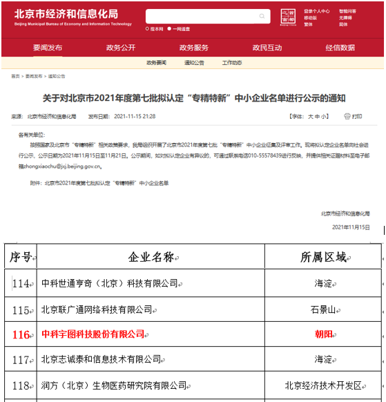 喜報!中科宇圖成功入選北京市2021年度 “專精特新”中小企業(yè)名單